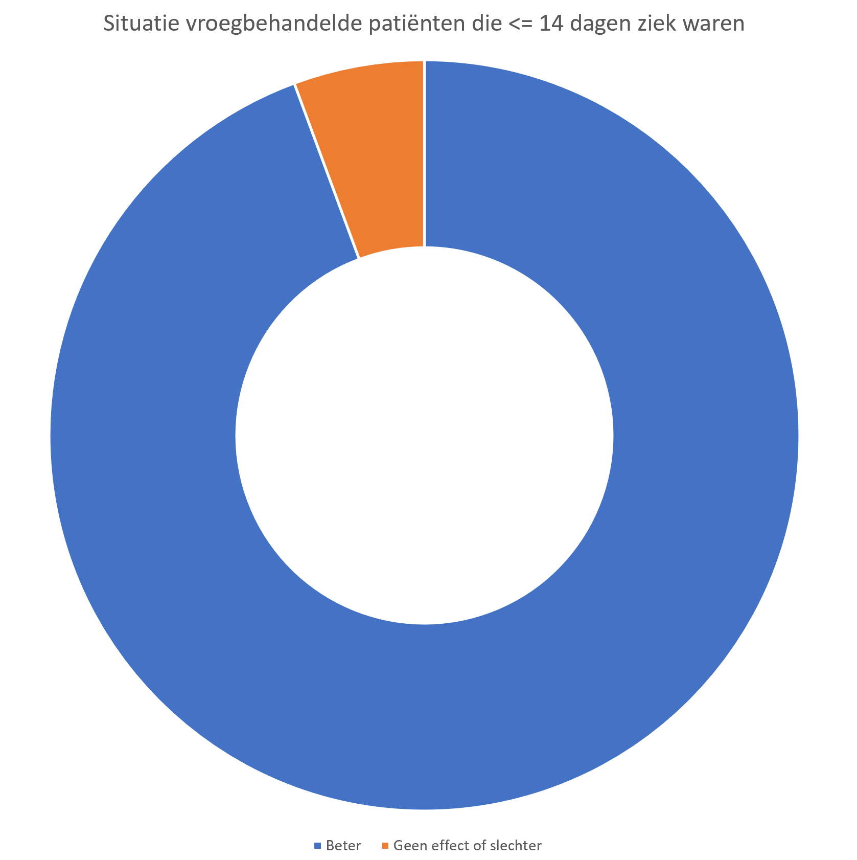 De artsen hebben een protocol ontwikkeld dat zeer effectief heeft gewerkt voor (vroeg)behandeling van COVID-19: ruim 94% van de nagebelde patienten, die 14 dagen (of minder) ziek waren, gaf aan beter geworden te zijn na de telebehandeling. In slechts 6% van de gevallen werd de situatie niet beter of verslechterde.
