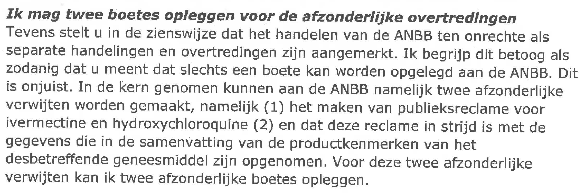 Het gevolg van dit boetebesluit is dat alle artikelen waarin ivermectine en/of HCQ voorkomen zullen moeten worden herzien of verwijderd.